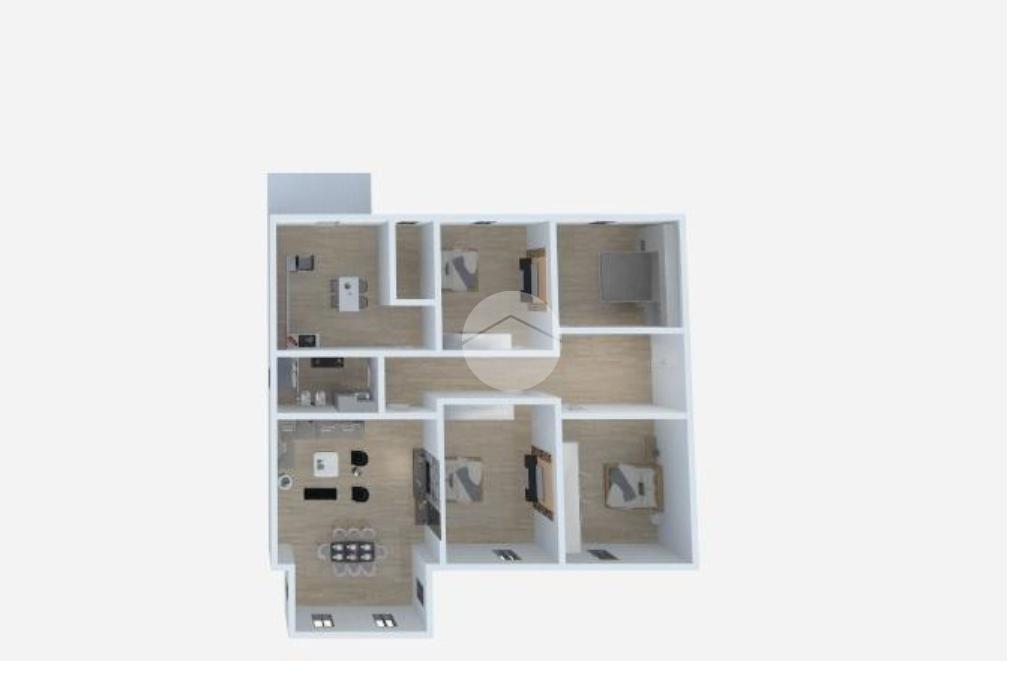 L'appartamento è composto da ingresso, soggiorno, cucina abitabile con uscita sul balcone, quattro camere da letto, bagno finestrato con box doccia e ripostiglio.